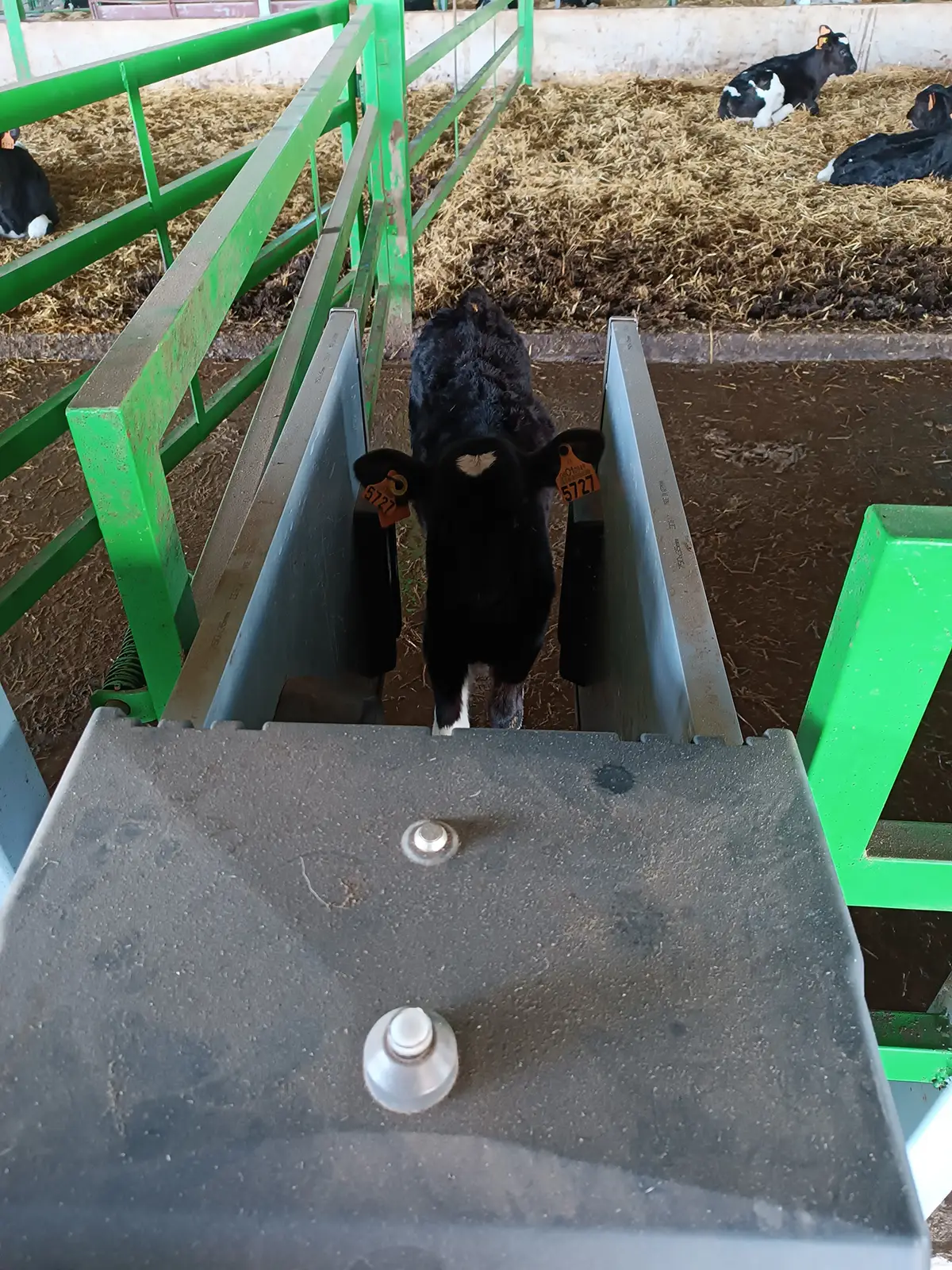 Cada ternero se identifica con un crotal electrónico para asignarle una dosis de alimento acorde a sus necesidades.