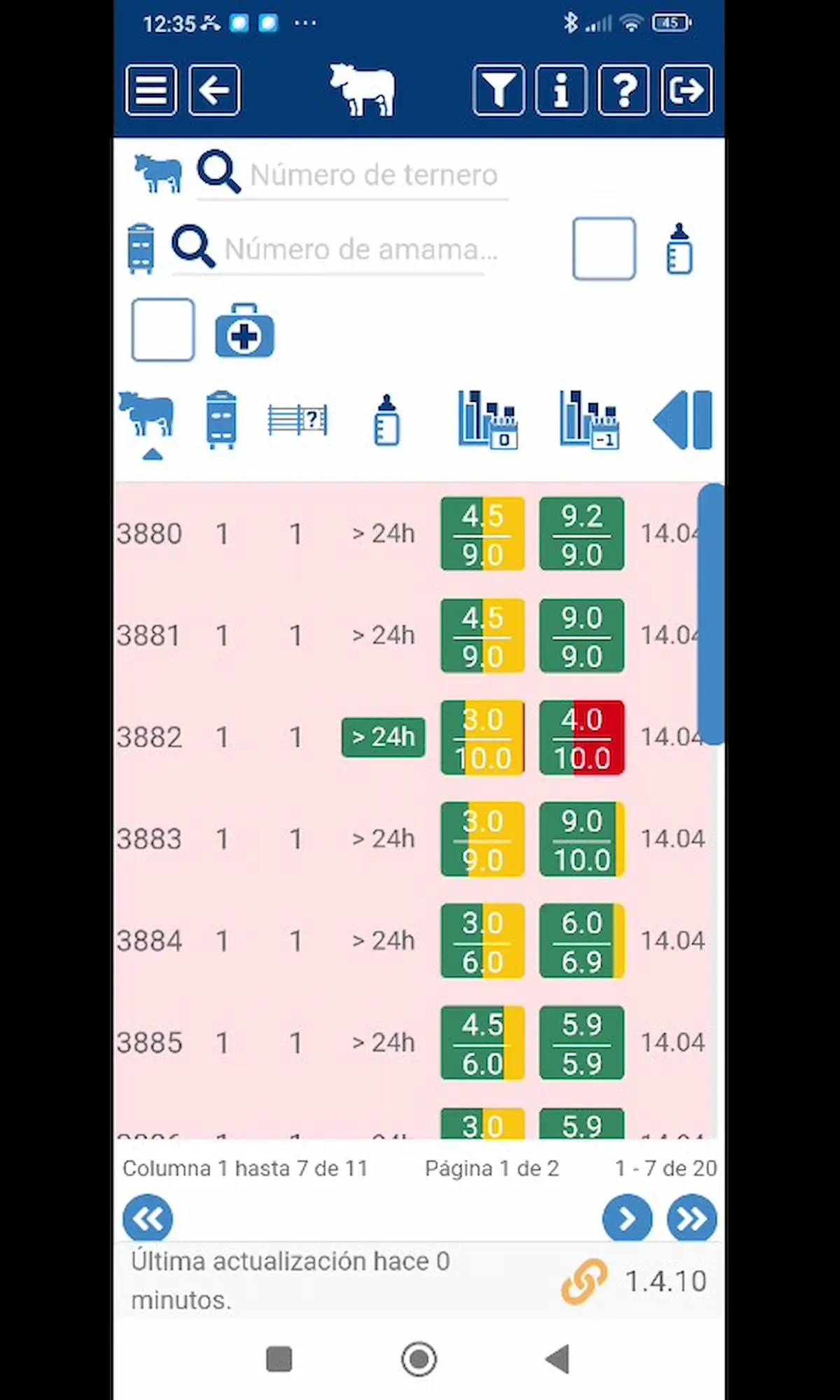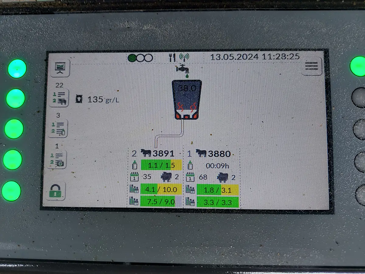 Emite alertas cuando uno de los terneros no ingiere la totalidad de la dosis asignada (posible enfermedad)