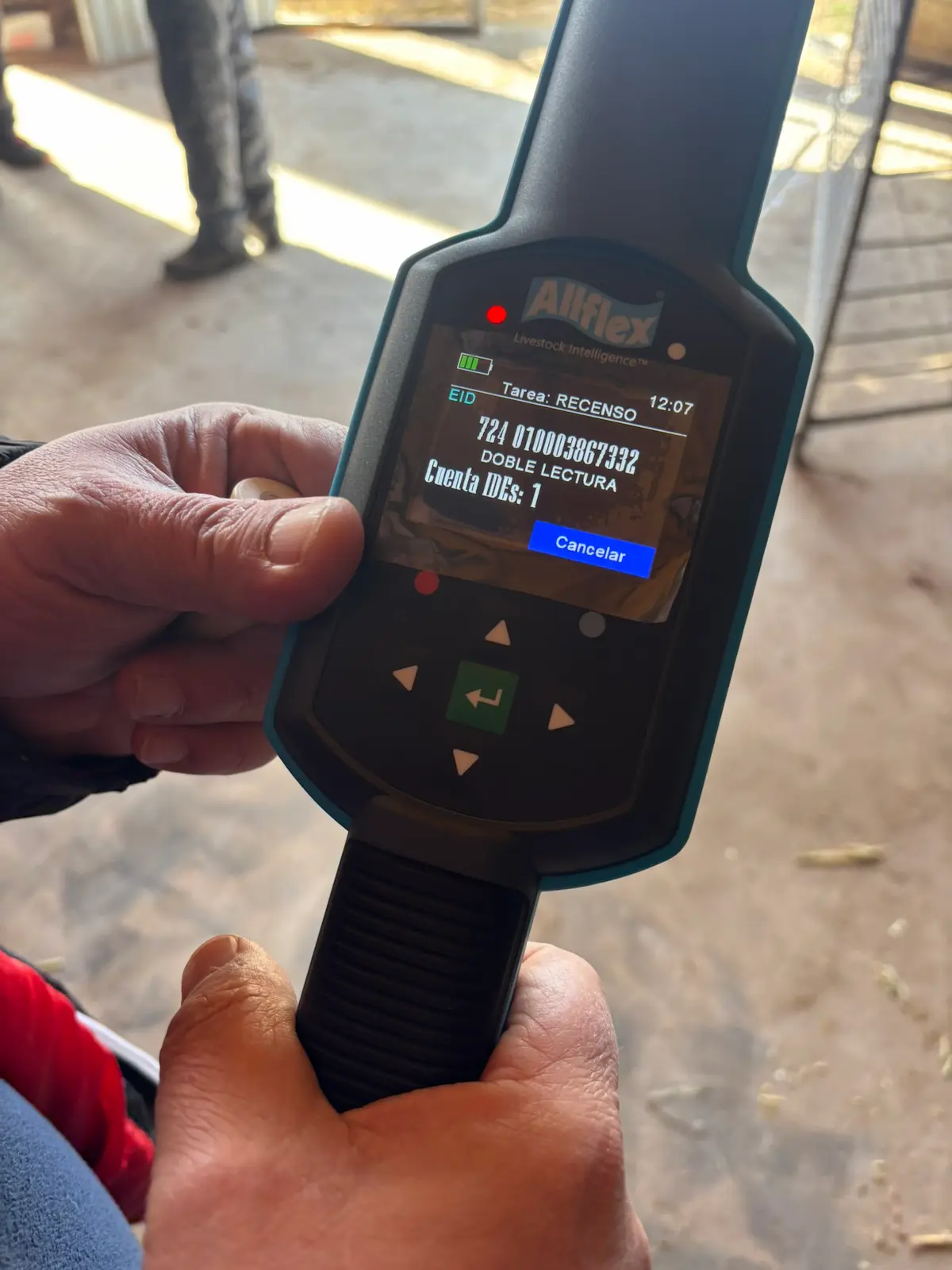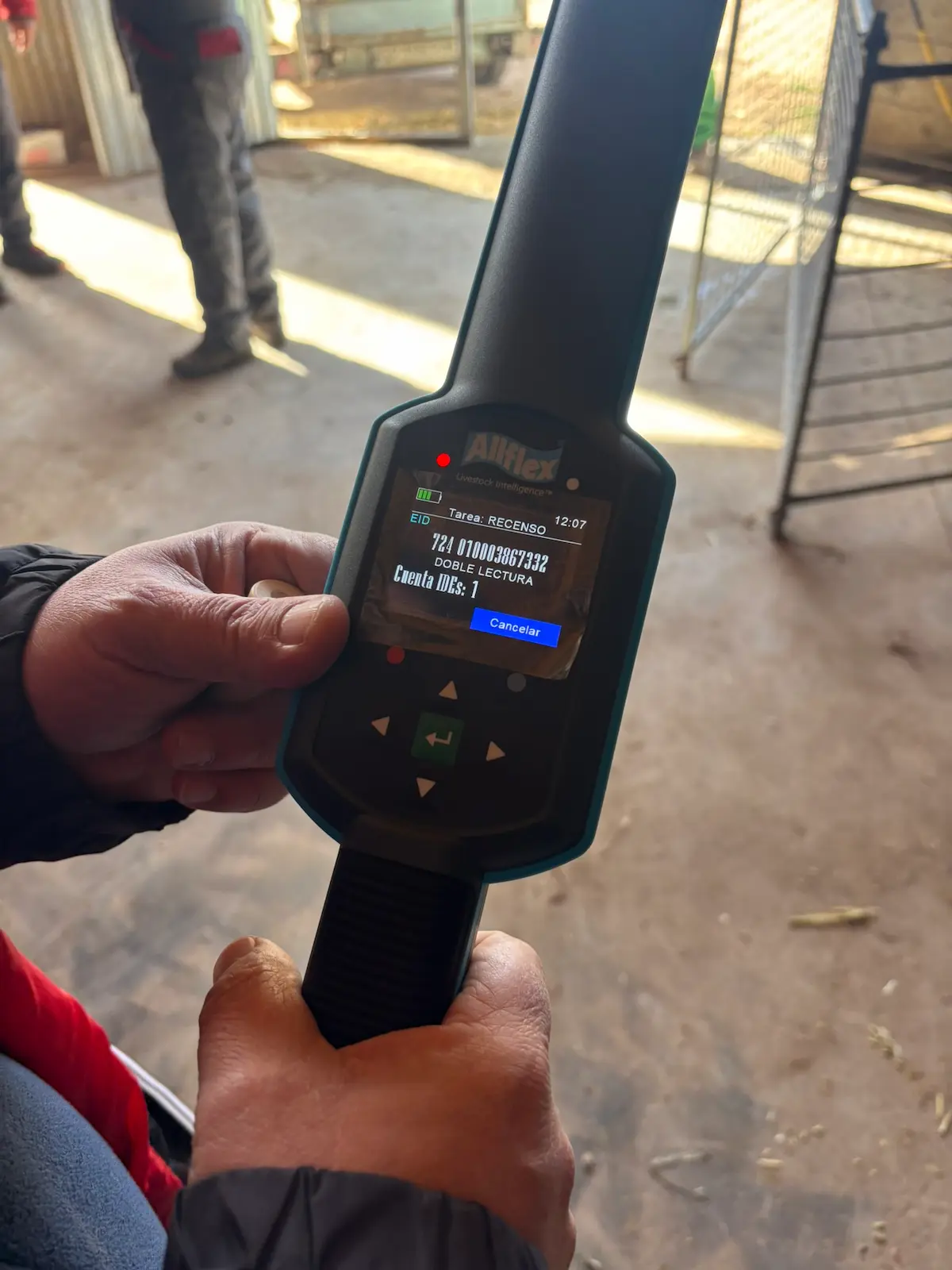 Dispositivo electrónico que permite leer el microchip del bolo ruminal o crotal electrónico para su identificación individual.