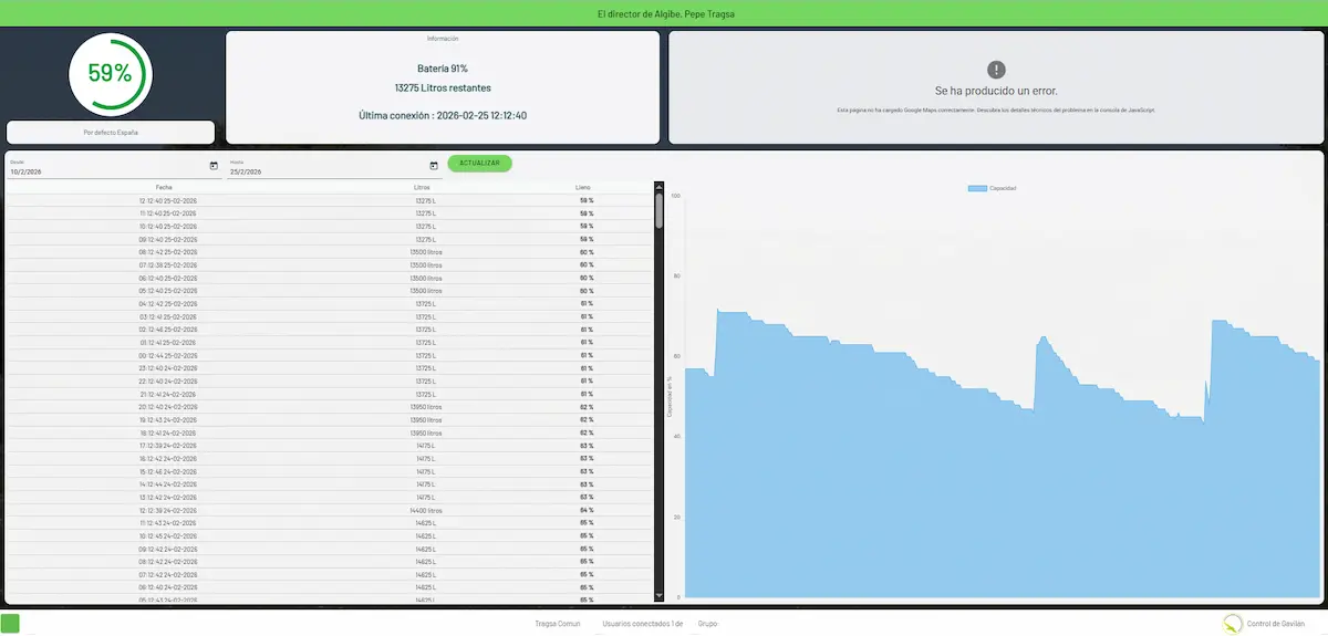 Mediante tecnología de infrarrojos calcula el nivel del agua disponible en el depósito y transmite la información en tiempo real.