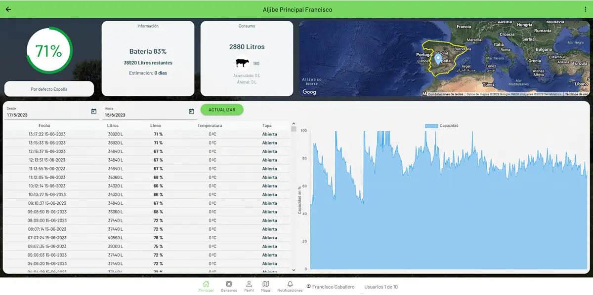 Facilita la monitorización del nivel de agua sin necesidad de realizar observación directa del depósito, la gestión de consumo y la detección de averías.